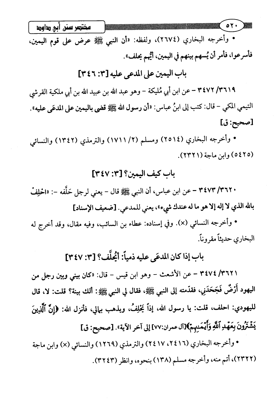 3619/ 3472 - عن ابن أبي مُليكة -وهو عبد اللَّه بن عبيد اللَّه بن أبي ملكية القرشي التيمي المكي- قال: كتب إلى ابنُ عباس: "أن رسول اللَّه -صلى اللَّه عليه وسلم- قضى باليمين على المدعَى عليه".hصحيح: ق]