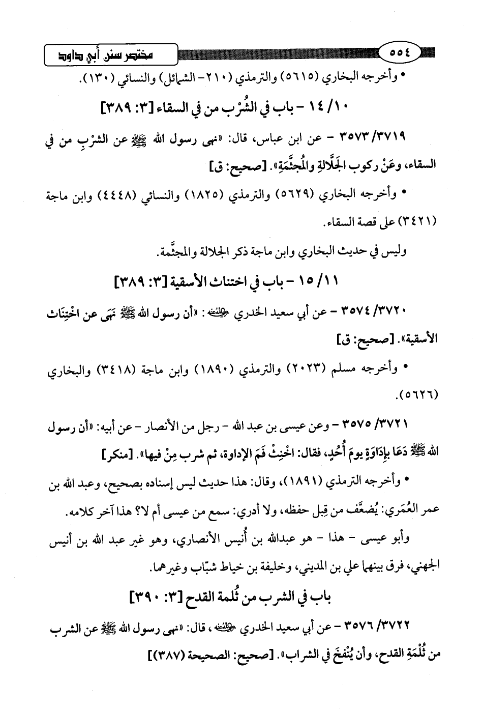 10/ 14 - باب في الشُرْب من في السقاء [3: 389]