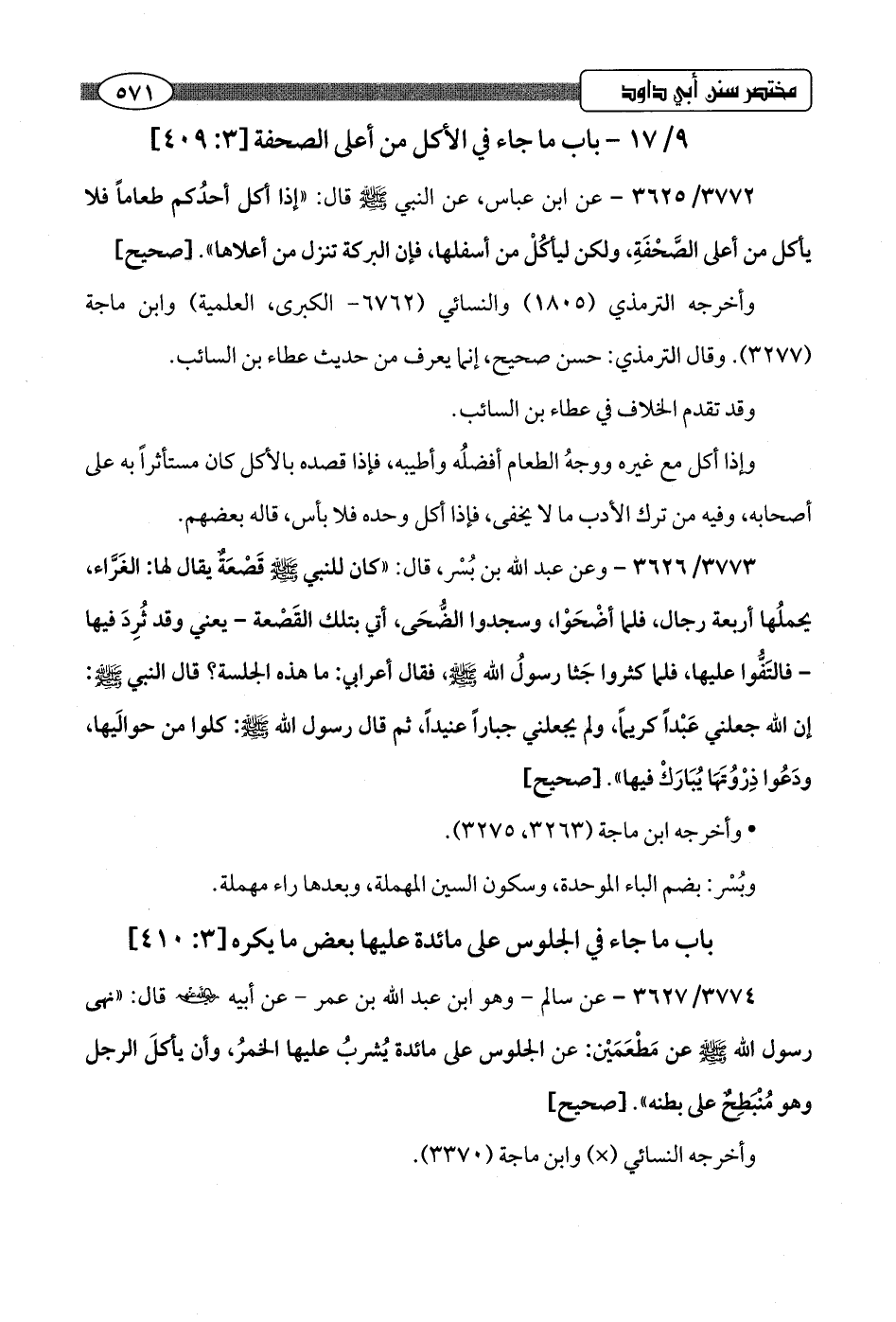 9/ 17 - باب ما جاء في الأكل من أعلى الصحفة [3: 409]