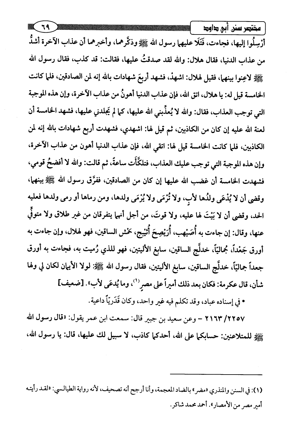 2257/ 2163 - وعن سعيد بن جبير قال: سمعت ابن عمر يقول: "قال رسول اللَّه -صلى اللَّه عليه وسلم- للمتلاعنين: حسابكما على اللَّه، أحدكما كاذب، لا سبيل لك عليها، قال: يا رسول اللَّه،