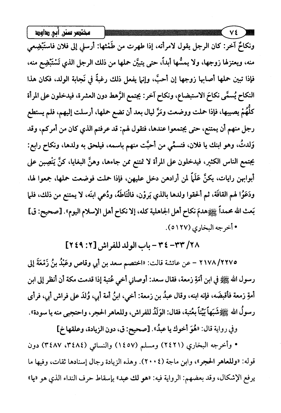28/ 33 - 34 - باب الولد للفراش [2: 249]
