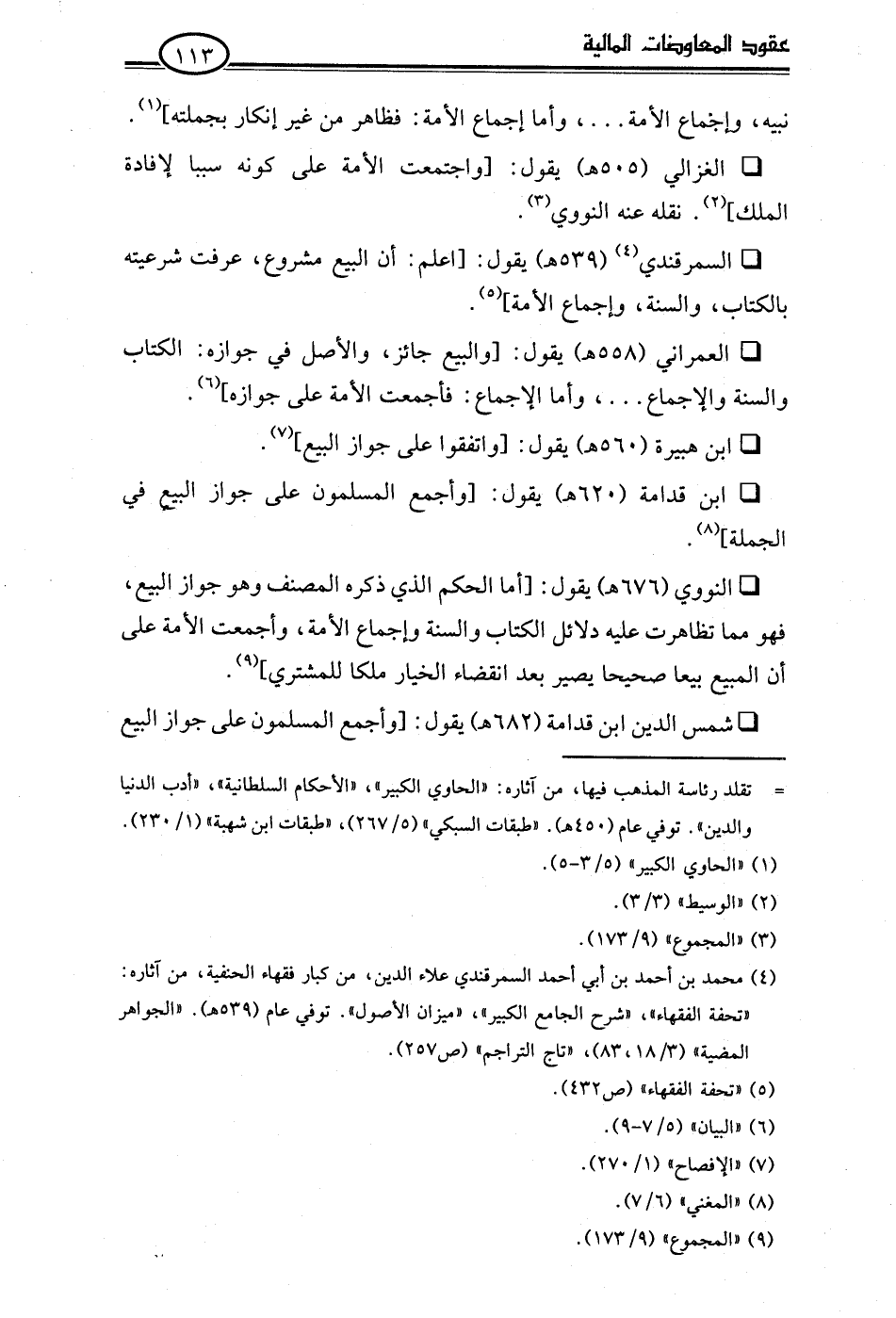 • الغزالي (505 هـ) يقول: [واجتمعت الأمة على كونه سببا لإفادة الملك] (¬2). نقله عنه النووي (¬3).