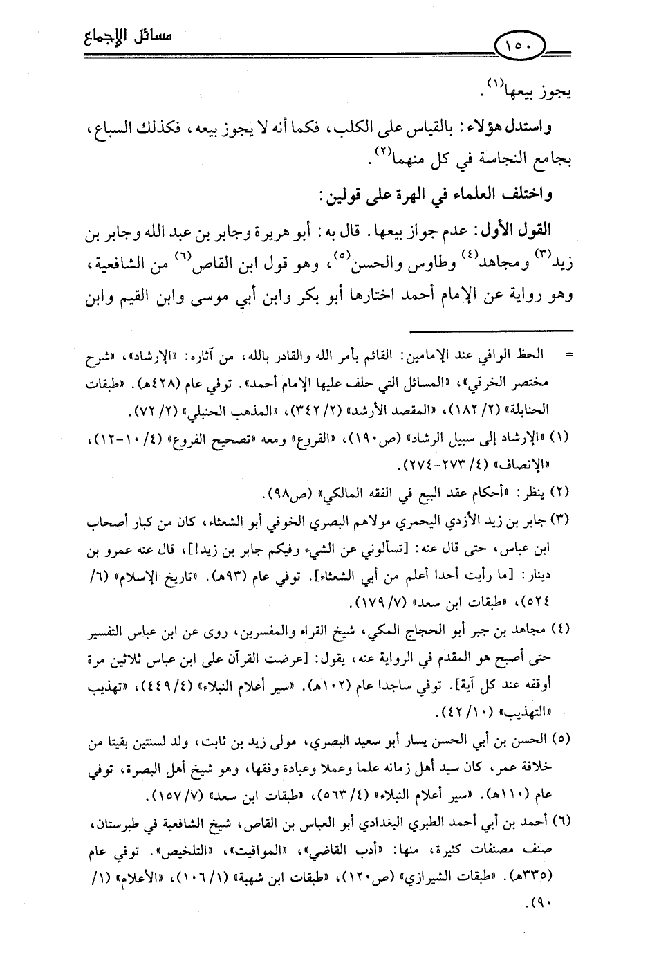 (¬1) "الإرشاد إلى سبيل الرشاد" (ص 190)، "الفروع" ومعه "تصحيح الفروع" (4/ 10 - 12)، "الإنصاف" (4/ 273 - 274).