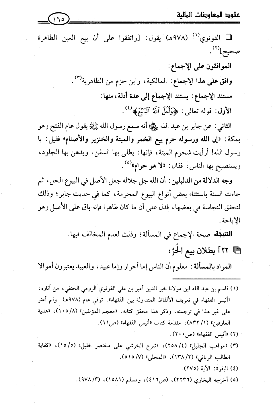 • القونوي (¬1) (978 هـ) يقول: [واتفقوا على أن بيع العين الطاهرة صحيح] (¬2).