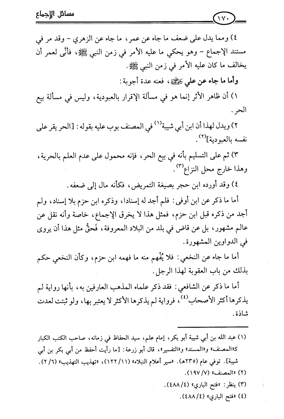 2) ويدل لهذا أن ابن أبي شيبة (¬1) في المصنف بوب عليه بقوله: [الحر يقر على نفسه بالعبودية] (¬2).