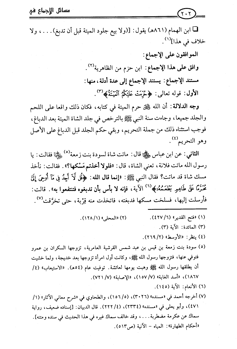 • ابن الهمام (861 هـ) يقول: [(ولا بيع جلود الميتة قبل أن تدبغ). . .، ولا خلاف في هذا] (¬1).