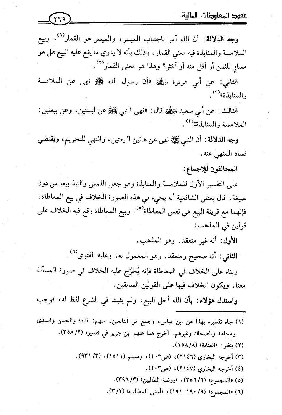 الثاني: عن أبي هريرة -رضي اللَّه عنه- "أن رسول اللَّه -صلى اللَّه عليه وسلم- نهى عن الملامسة والمنابذة" (¬3).