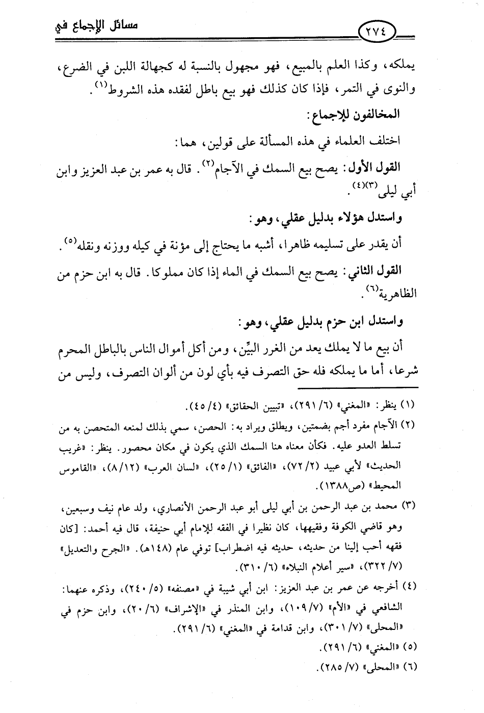 (¬6) "المحلى" (7/ 285).