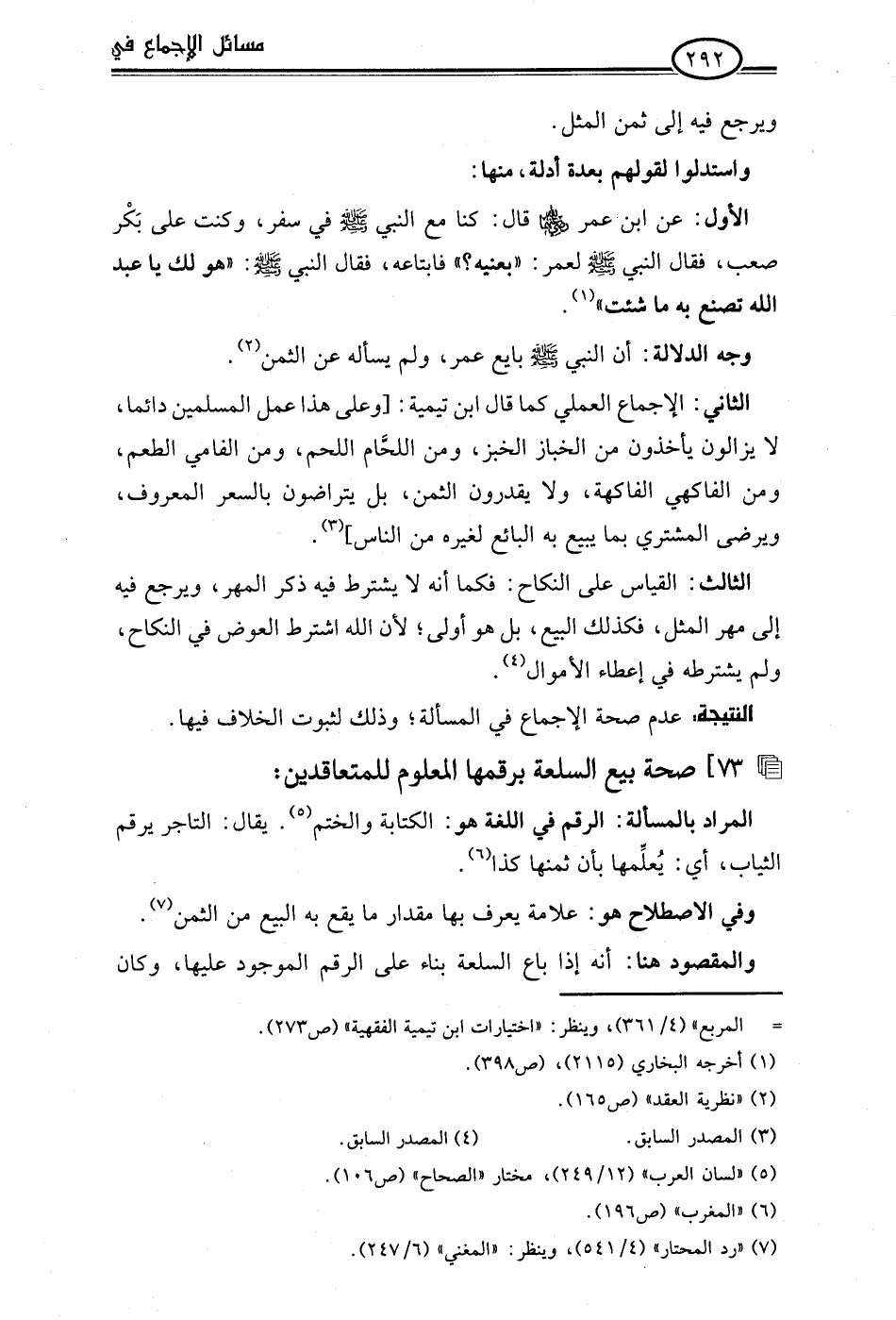 73] صحة بيع السلعة برقمها المعلوم للمتعاقدين: