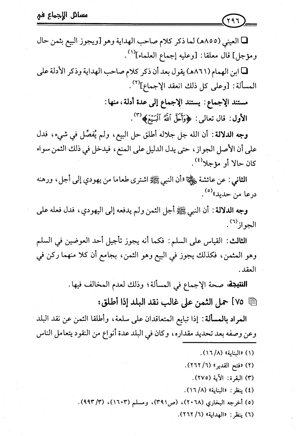 • ابن الهمام (861 هـ) يقول بعد أن ذكر كلام صاحب الهداية وذكر الأدلة على المسألة: [وعلى كل ذلك انعقد الإجماع] (¬2).
