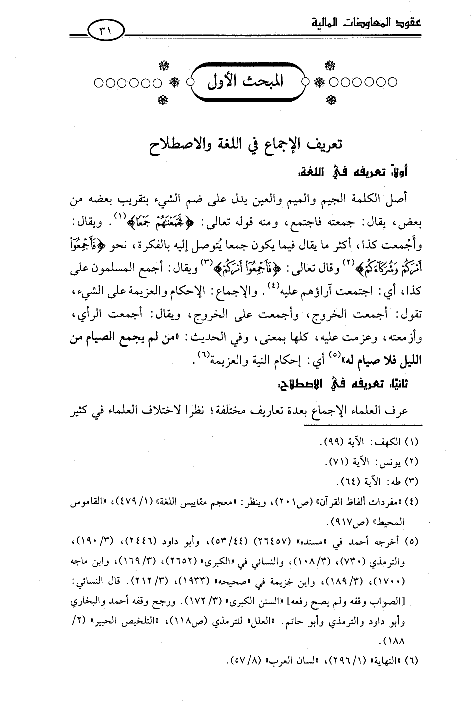 المبحث الأول: تعريف الإجماع في اللغة والاصطلاح
