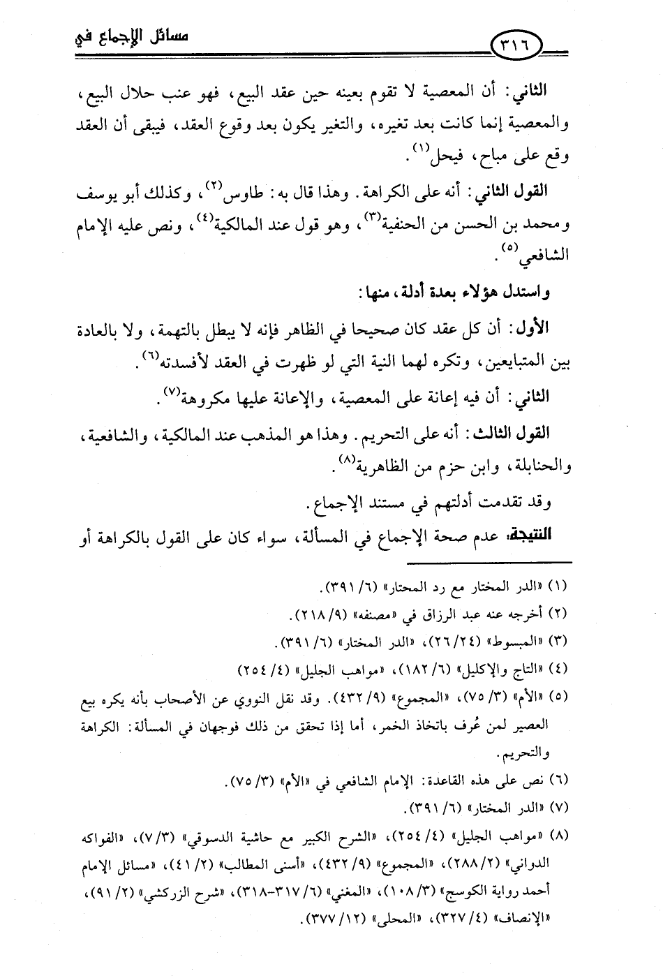 (¬8) "مواهب الجليل" (4/ 254)، "الشرح الكبير مع حاشية الدسوقي" (3/ 7)، "الفواكه الدواني" (2/ 288)، "المجموع" (9/ 432)، "أسنى المطالب" (2/ 41)، "مسائل الإمام أحمد رواية الكوسج" (3/ 108)، "المغني" (6/ 317 - 318)، "شرح الزركشي" (2/ 91)، "الإنصاف" (4/ 327)، "المحلى" (12/ 377).
