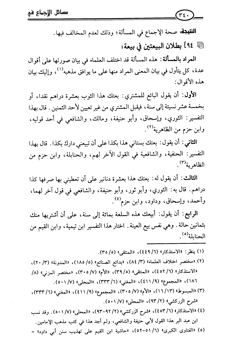 (¬4) "الاستذكار" (6/ 453)، "شرح الزركشي" (2/ 92 - 93)، "المحلى" (7/ 501). وقد نسب ابن عبد البر هذا القول لأبي حنيفة والشافعي، ولم أجد هذا في كتب مذهب الإمامين.