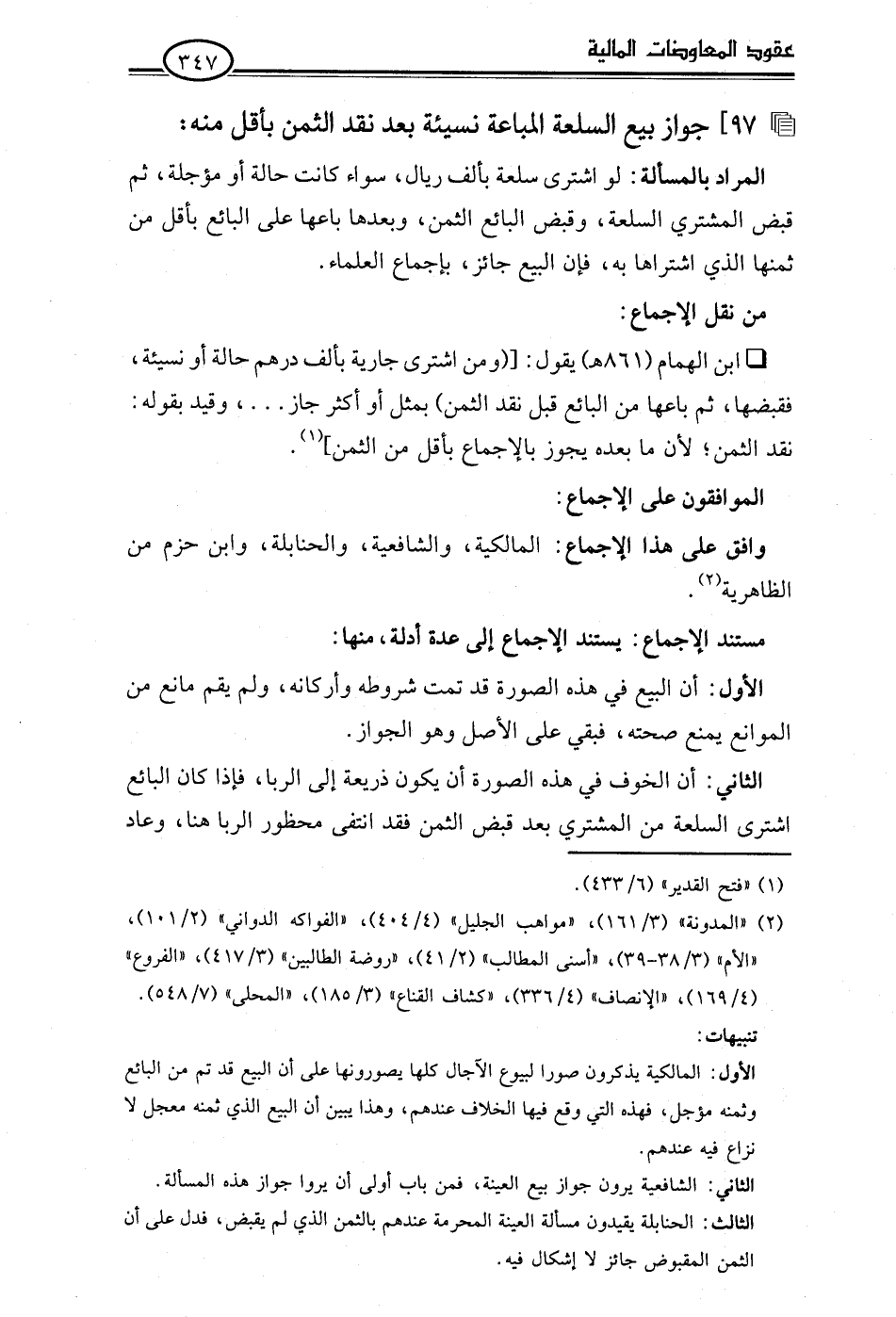 97] جواز بيع السلعة المباعة نسيئة بعد نقد الثمن بأقل منه: