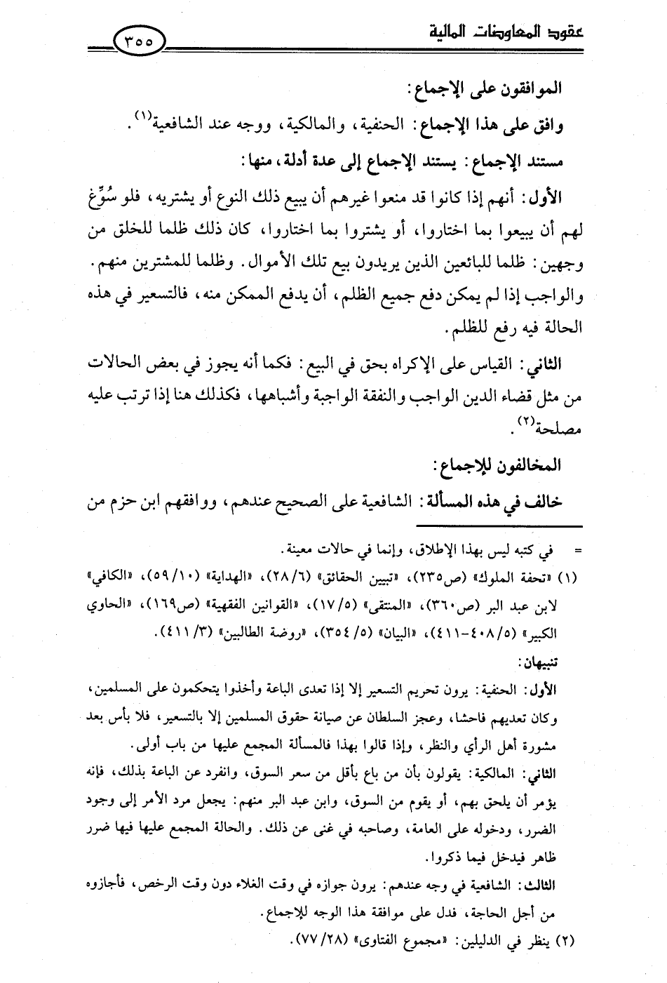 الأول: الحنفية: يرون تحريم التسعير إلا إذا تعدى الباعة وأخذوا يتحكمون على المسلمين، وكان تعديهم فاحشا، وعجز السلطان عن صيانة حقوق المسلمين إلا بالتسعير، فلا بأس بعد مشورة أهل الرأي والنظر، وإذا قالوا بهذا فالمسألة المجمع عليها من باب أولى.