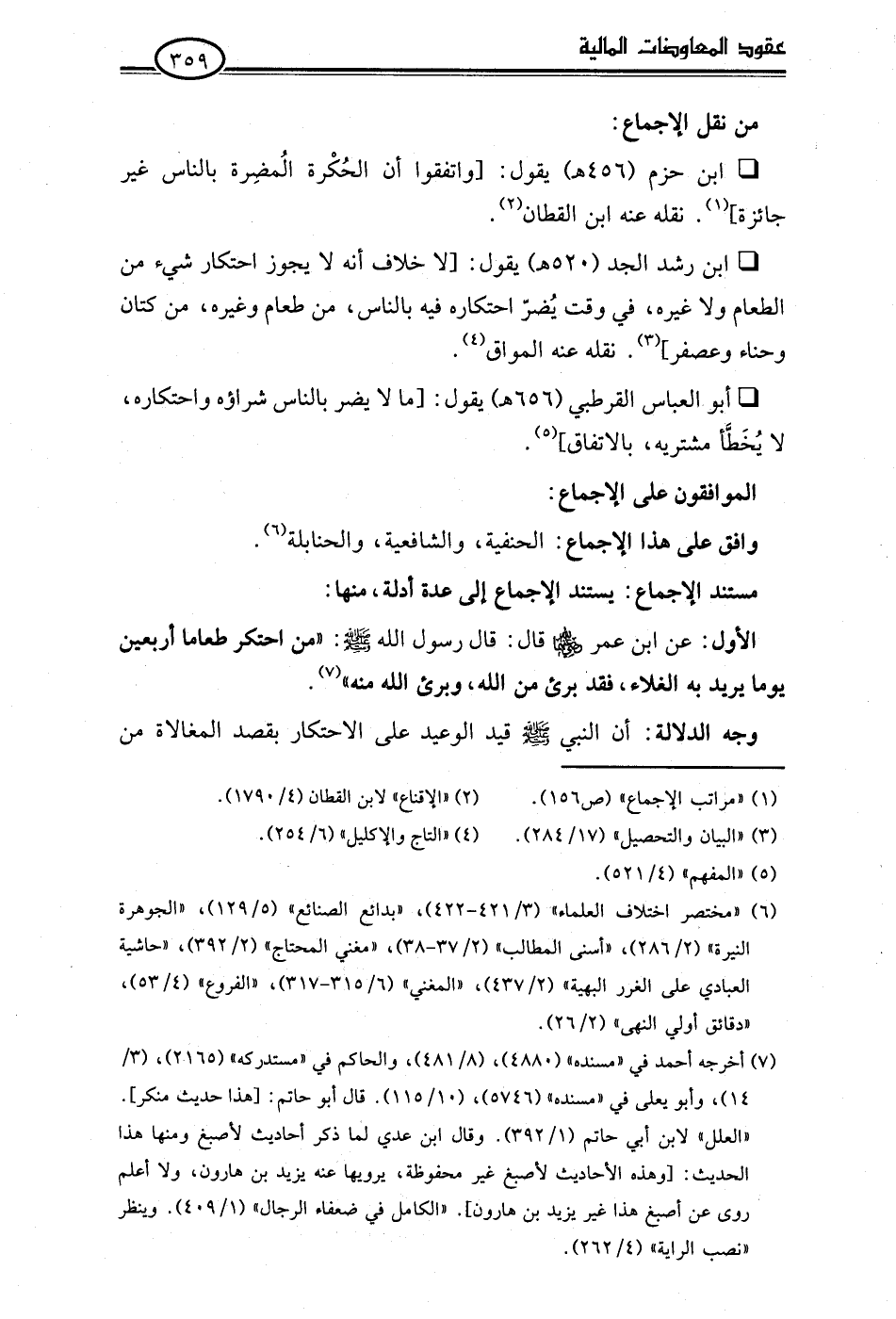 • ابن حزم (456 هـ) يقول: [واتفقوا أن الحُكْرة المُضِرة بالناس غير جائزة] (¬1). نقله عنه ابن القطان (¬2).