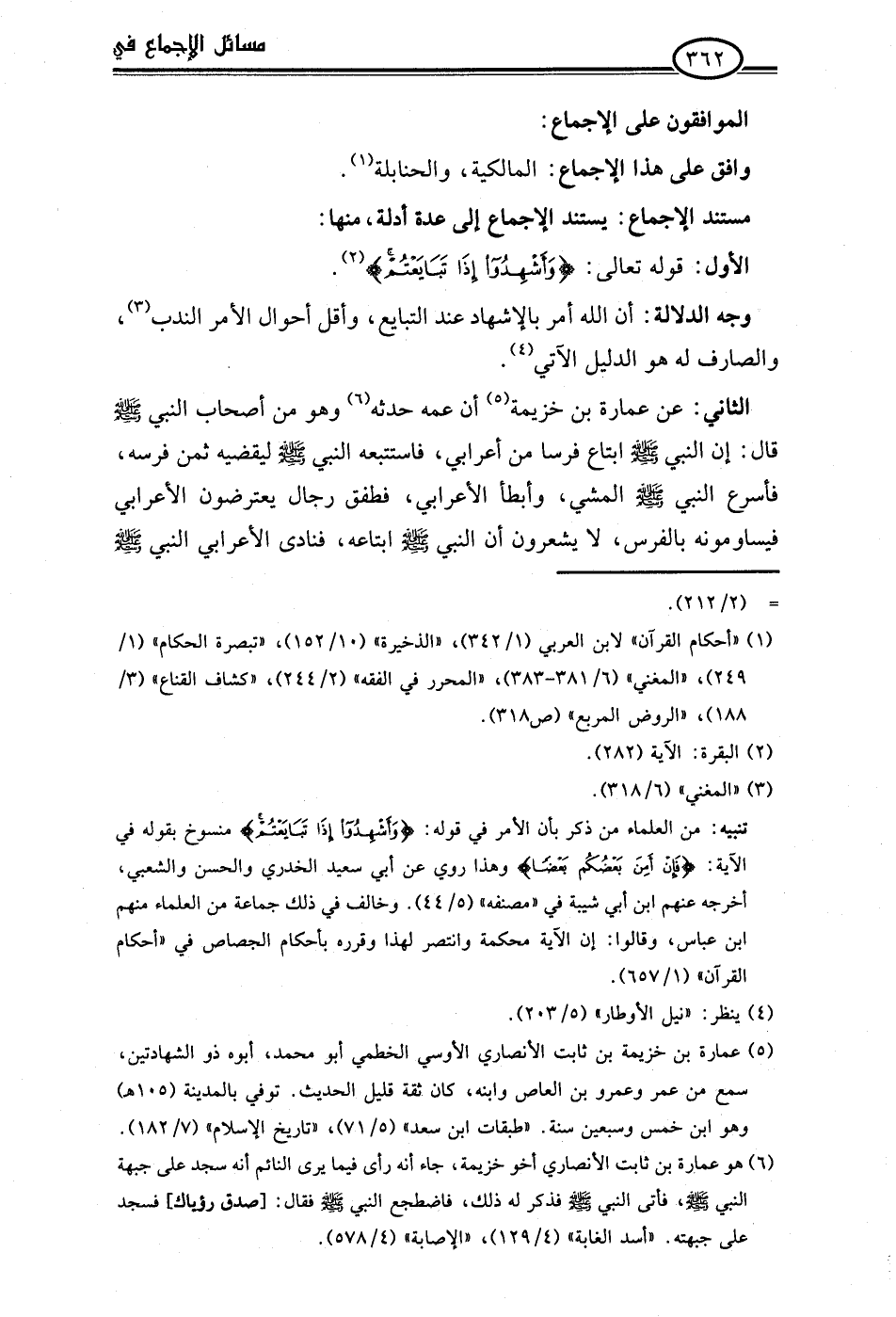(¬1) "أحكام القرآن" لابن العربي (1/ 342)، "الذخيرة" (10/ 152)، "تبصرة الحكام" (1/ 249)، "المغني" (6/ 381 - 383)، "المحرر في الفقه" (2/ 244)، "كشاف القناع" (3/ 188)، "الروض المربع" (ص 318).
