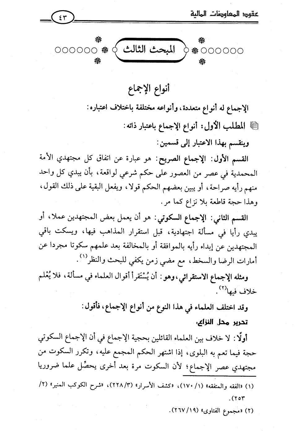 • المطلب الأول: أنواع الإجماع باعتبار ذاته: