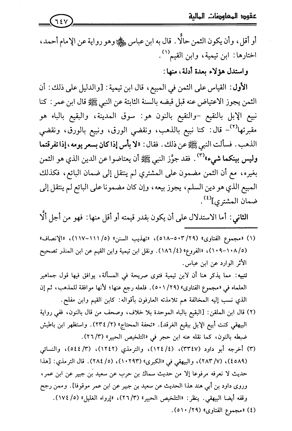 أو أقل، وأن يكون الثمن حالًّا. قال به ابن عباس -رضي اللَّه عنهما- وهو رواية عن الإمام أحمد، اختارها: ابن تيمية، وابن القيم (¬1).