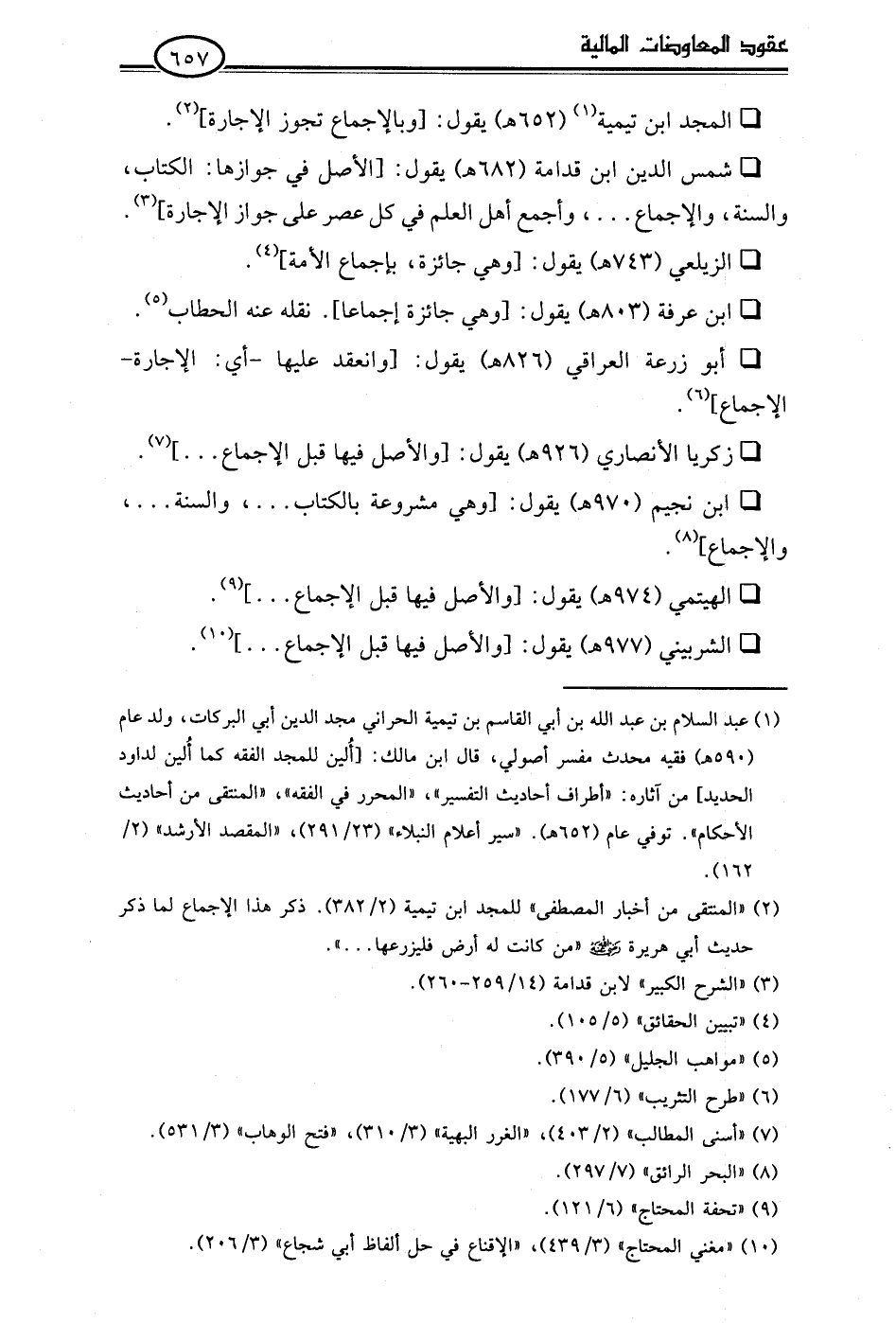 • المجد ابن تيمية (¬1) (652 هـ) يقول: [وبالإجماع تجوز الإجارة] (¬2).