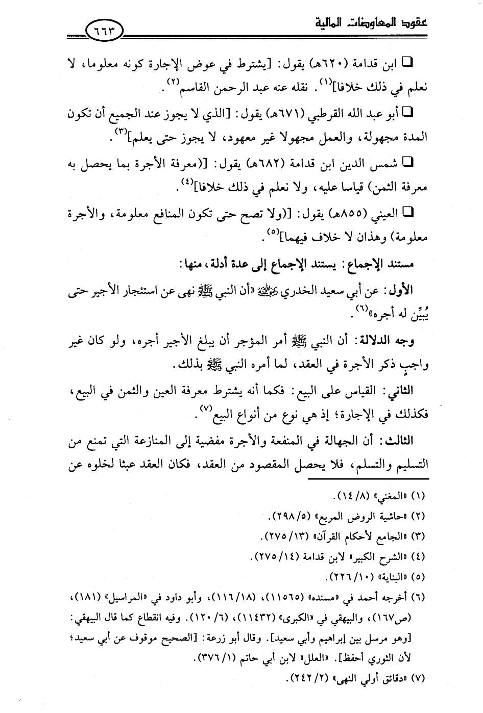 • ابن قدامة (620 هـ) يقول: [يشترط في عوض الإجارة كونه معلوما، لا نعلم في ذلك خلافا] (¬1). نقله عنه عبد الرحمن القاسم (¬2).