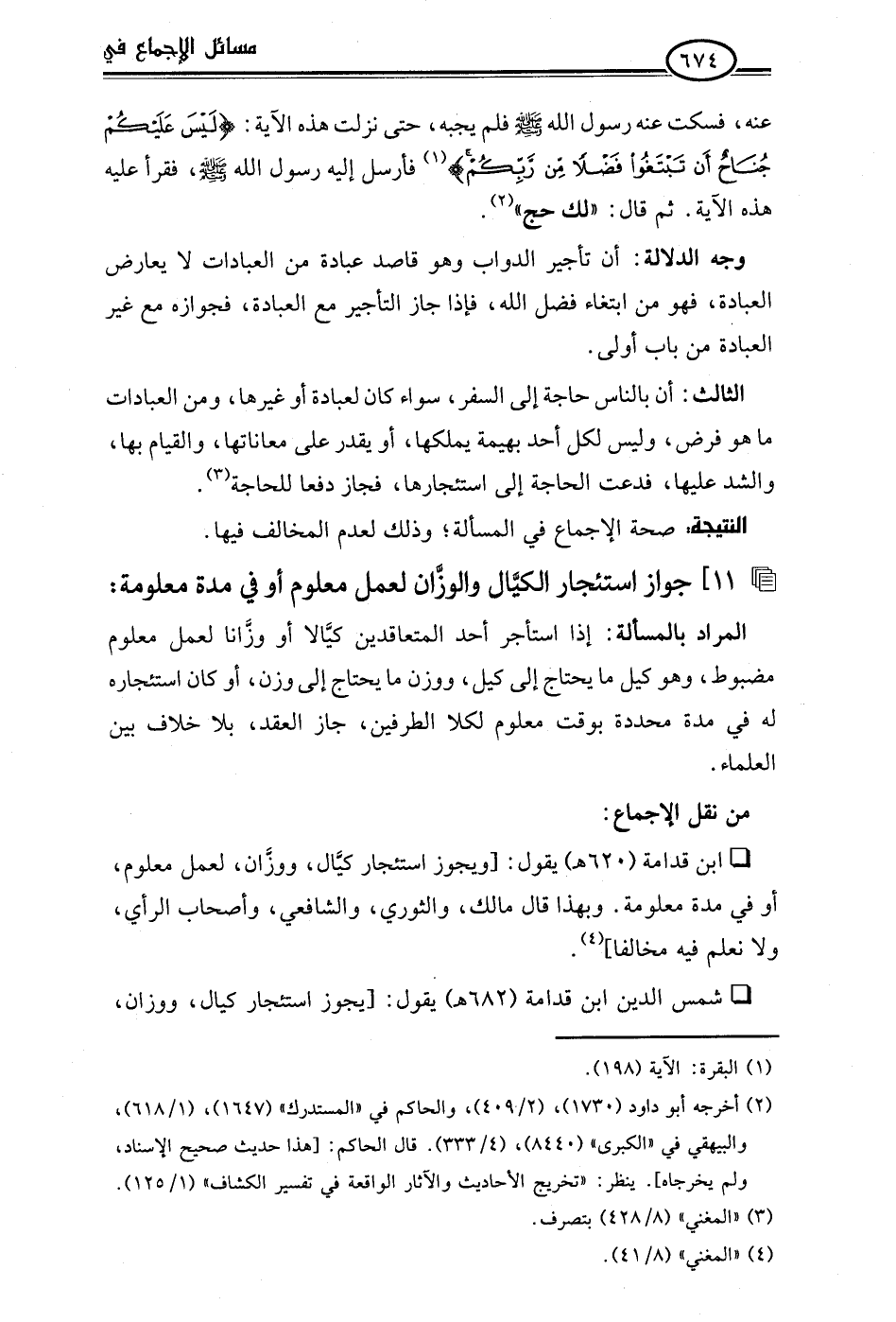 • ابن قدامة (620 هـ) يقول: [ويجوز استئجار كيَّال، ووزَّان، لعمل معلوم، أو في مدة معلومة. وبهذا قال مالك، والثوري، والشافعي، وأصحاب الرأي، ولا نعلم فيه مخالفًا] (¬4).