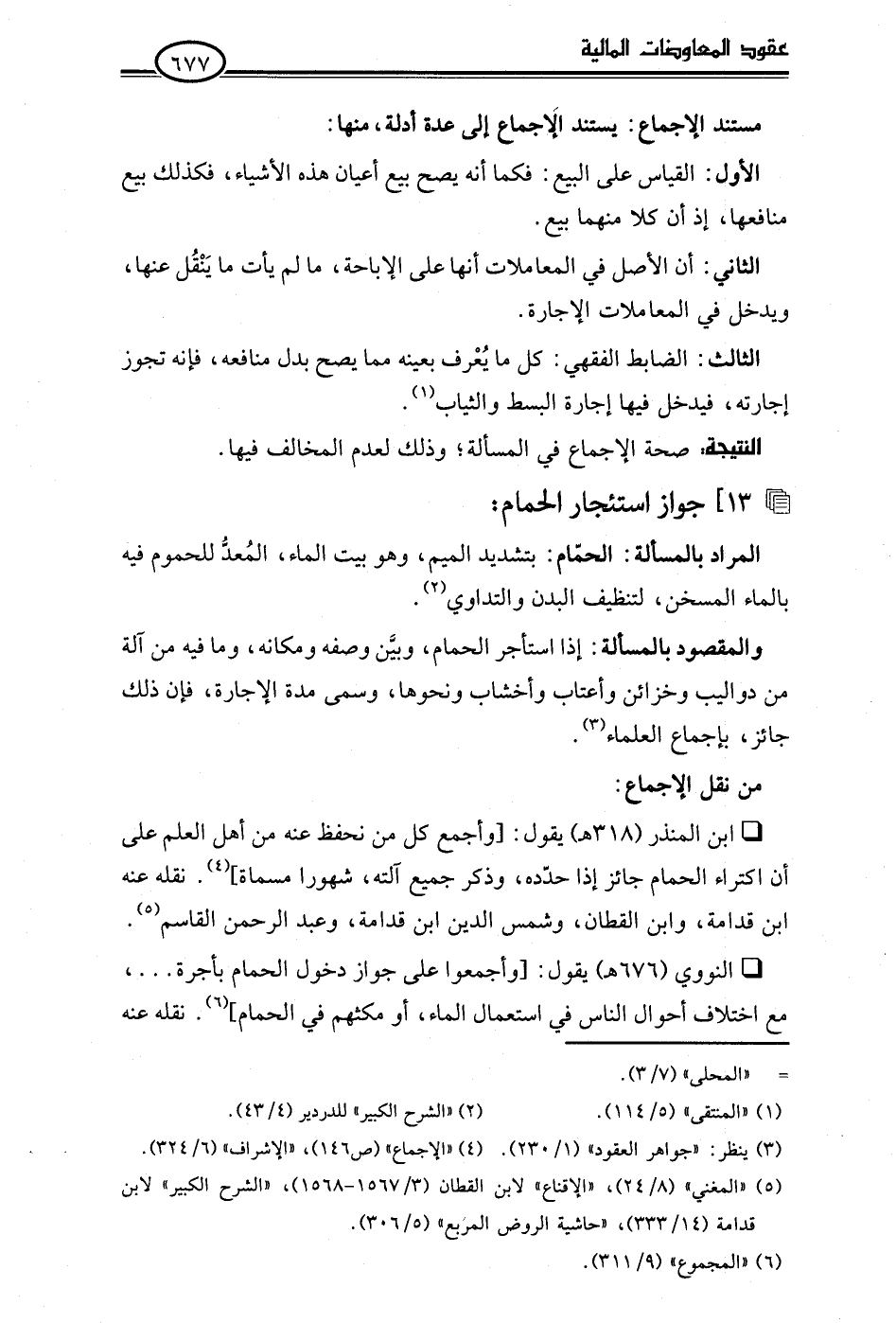 • ابن المنذر (318 هـ) يقول: [وأجمع كل من نحفظ عنه من أهل العلم على أن اكتراء الحمام جائز إذا حدّده، وذكر جميع آلته، شهورا مسماة] (¬4). نقله عنه ابن قدامة، وابن القطان، وشمس الدين ابن قدامة، وعبد الرحمن القاسم (¬5).