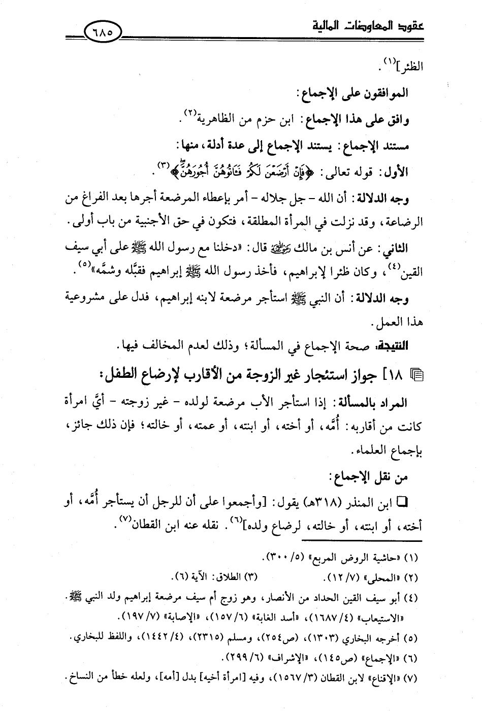 • وجه الدلالة: أن النبي -صلى اللَّه عليه وسلم- استأجر مرضعة لابنه إبراهيم، فدل على مشروعية هذا العمل.Rصحة الإجماع في المسألة؛ وذلك لعدم المخالف فيها.