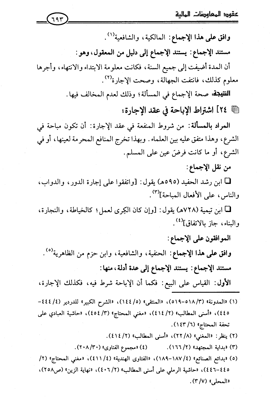 • ابن رشد الحفيد (595 هـ) يقول: [واتفقوا على إجارة الدور، والدواب، والناس، على الأفعال المباحة] (¬3).