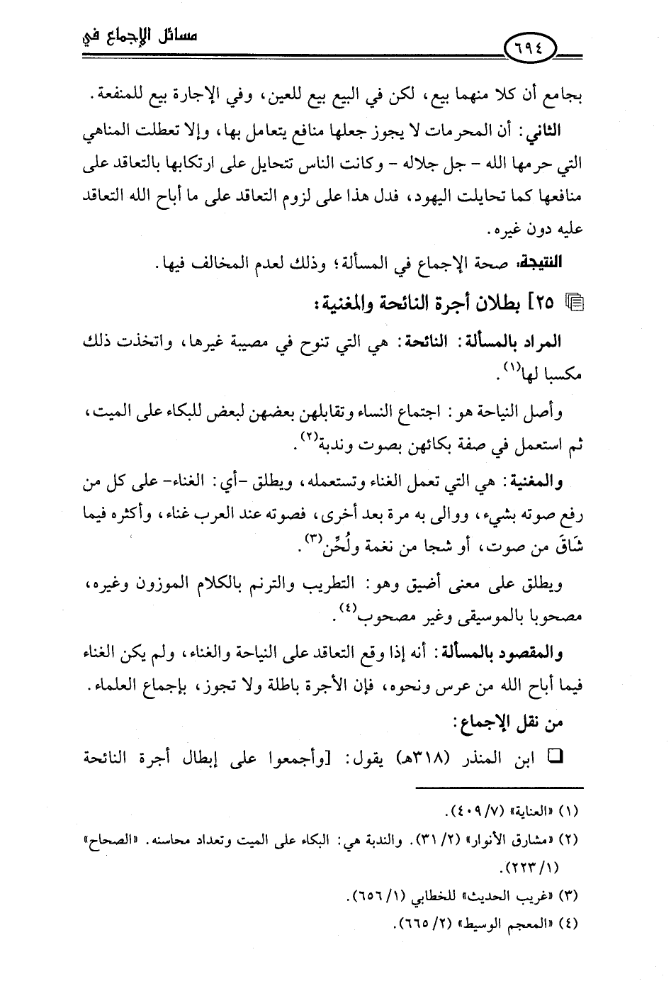 • ابن المنذر (318 هـ) يقول: [وأجمعوا على إبطال أجرة النائحة