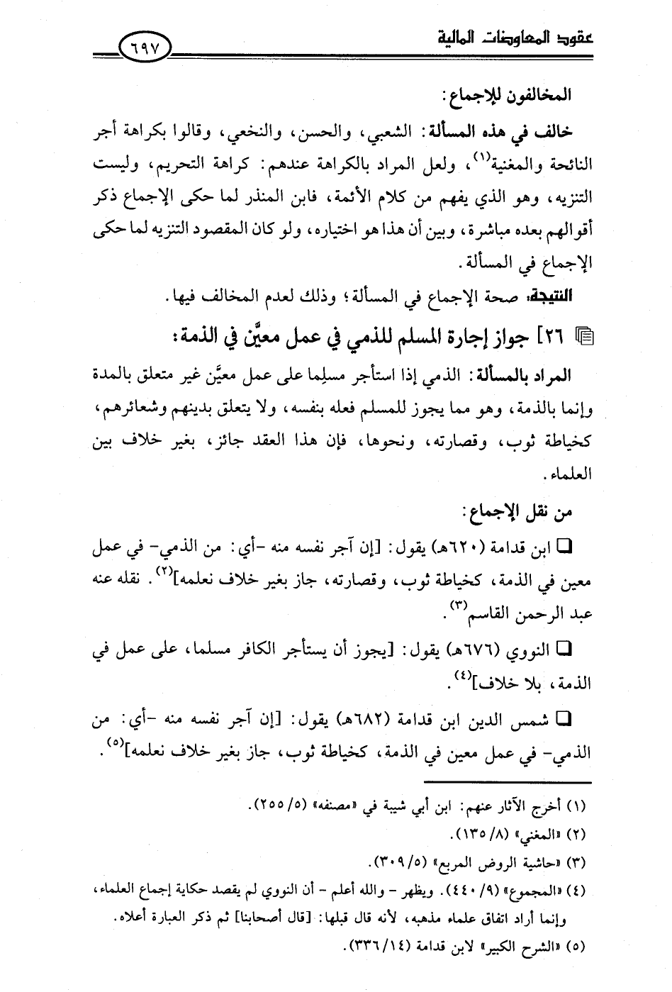 26] جواز إجارة المسلم للذمي في عمل معيَّن في الذمة: