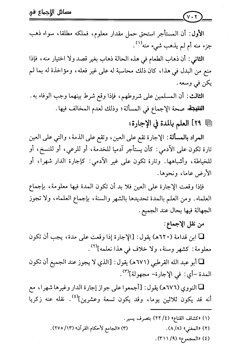 • ابن قدامة (620 هـ) يقول: [الإجارة إذا وقعت على مدة، يجب أن تكون معلومة: كشهر وسنة، ولا خلاف في هذا نعلمه] (¬2).