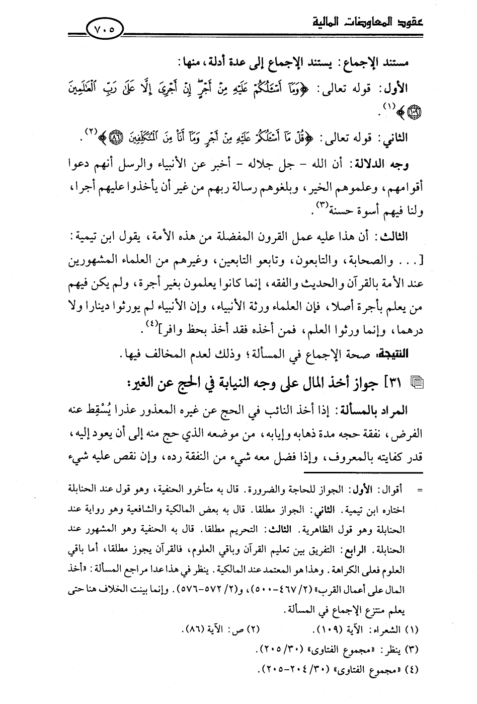 31] جواز أخذ المال على وجه النيابة في الحج عن الغير: