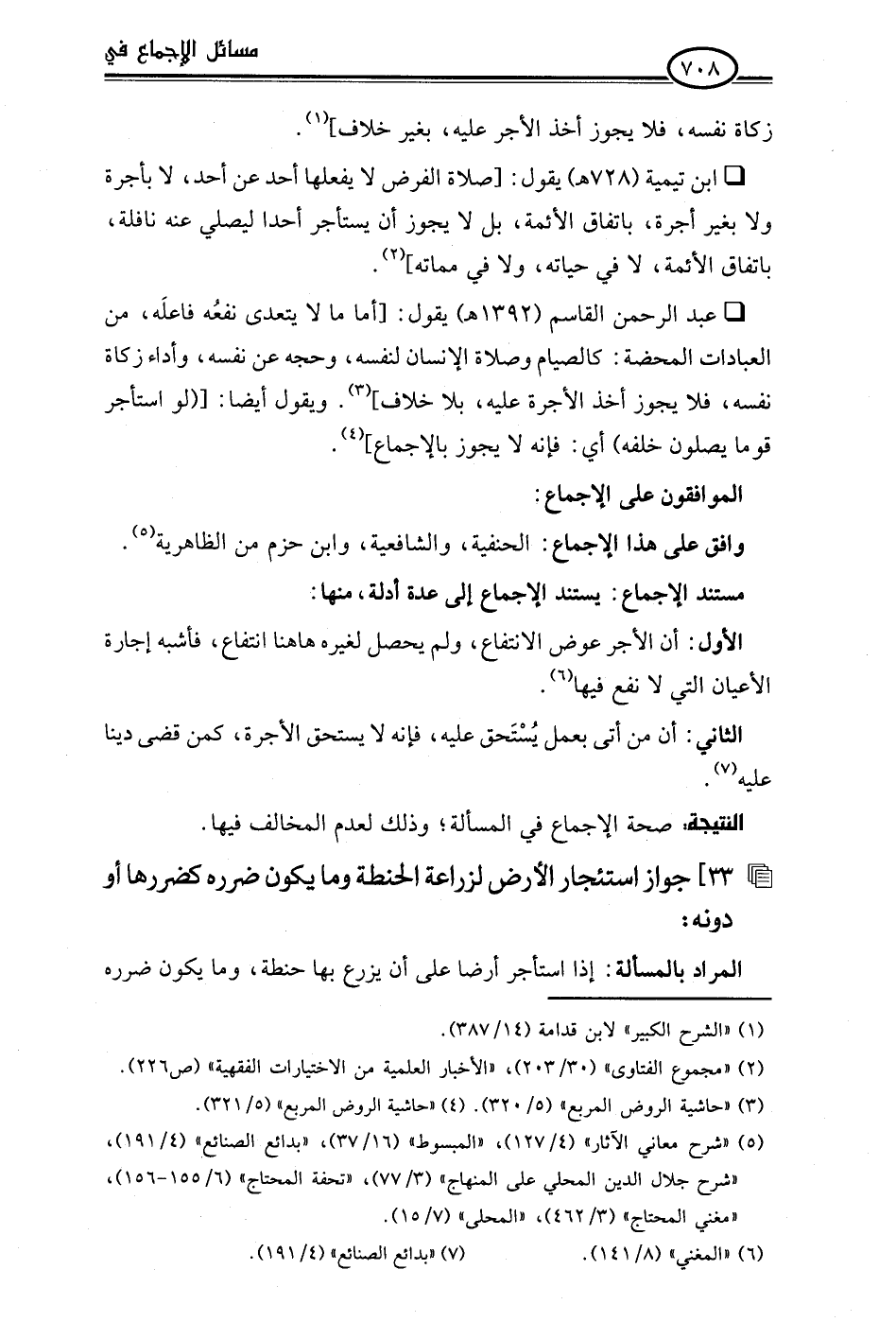 الثاني: أن من أتى بعمل يُسْتَحق عليه، فإنه لا يستحق الأجرة، كمن قضى دينا عليه (¬7).Rصحة الإجماع في المسألة؛ وذلك لعدم المخالف فيها.