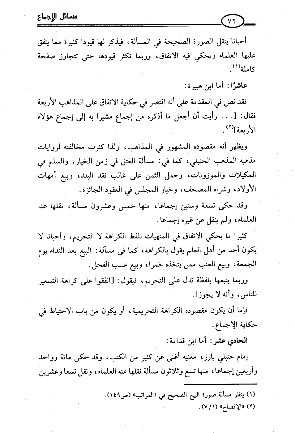 إمام حنبلي بارز، مغنيه أغنى عن كثير من الكتب، وقد حكى مائة وواحد وأربعين إجماعا، منها تسع وثلاثون مسألة نقلها عنه العلماء، ونقل تسعا وعشرين