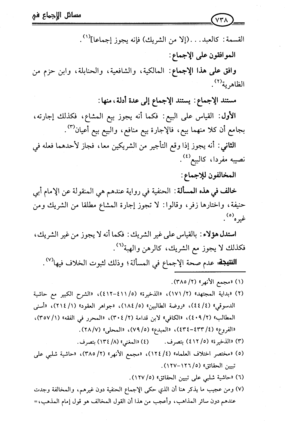 استدل هؤلاء: بالقياس على غير الشريك: فكما أنه لا يجوز من غير الشريك، فكذلك لا يجوز مع الشريك، كالرهن والهبة (¬6).Rعدم صحة الإجماع في المسألة؛ وذلك لثبوت الخلاف فيها (¬7).