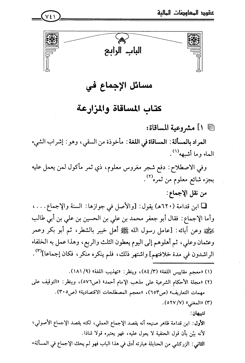 الباب الرابع: مسائل الإجماع في كتاب المساقاة والمزارعة