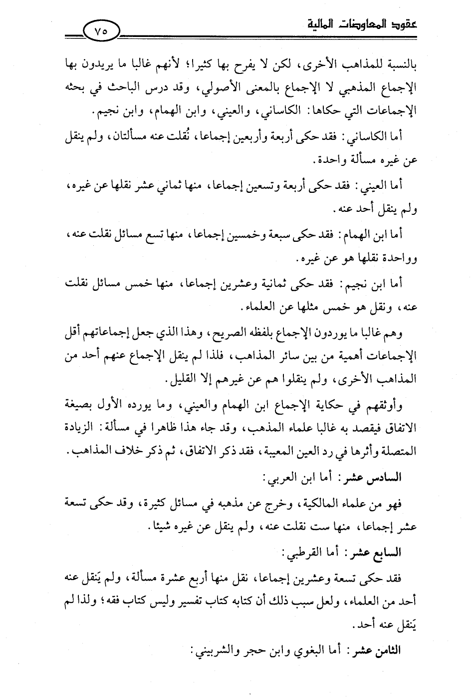 بالنسبة للمذاهب الأخرى، لكن لا يفرح بها كثيرا؛ لأنهم غالبا ما يريدون بها الإجماع المذهبي لا الإجماع بالمعنى الأصولي، وقد درس الباحث في بحثه الإجماعات التي حكاها: الكاساني، والعيني، وابن الهمام، وابن نجيم.