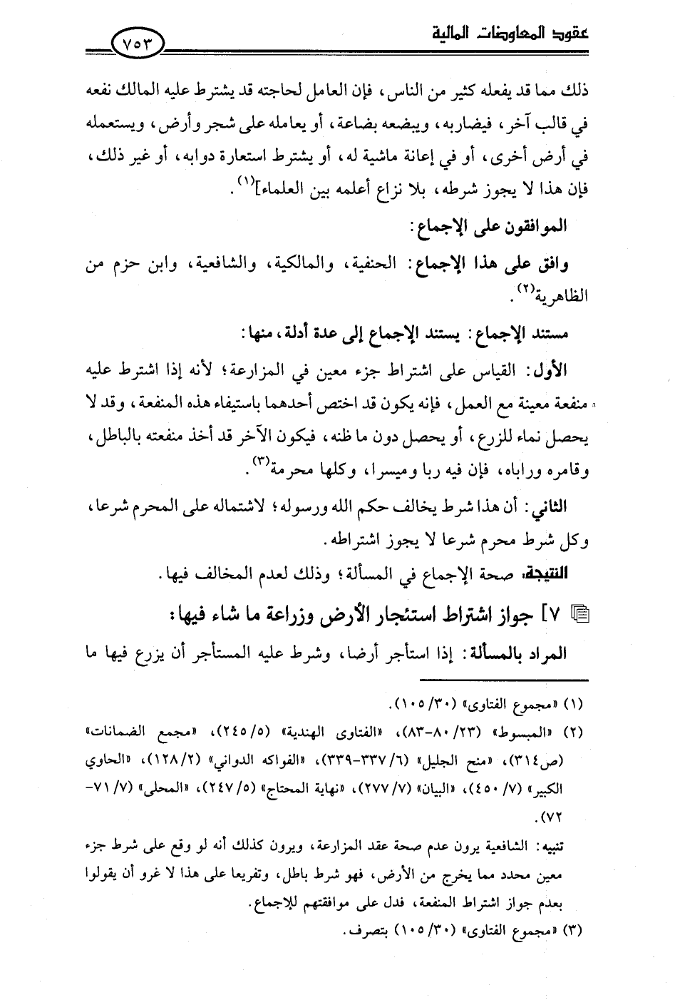 7] جواز اشتراط استئجار الأرض وزراعة ما شاء فيها: