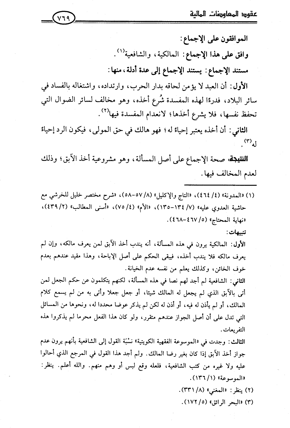 الثاني: أن أخذه يعتبر إحياءً له؛ فهو هالك في حق المولى، فيكون الرد إحياءً له (¬3).Rصحة الإجماع على أصل المسألة، وهو مشروعية أخذ الآبق؛ وذلك لعدم المخالف فيها.