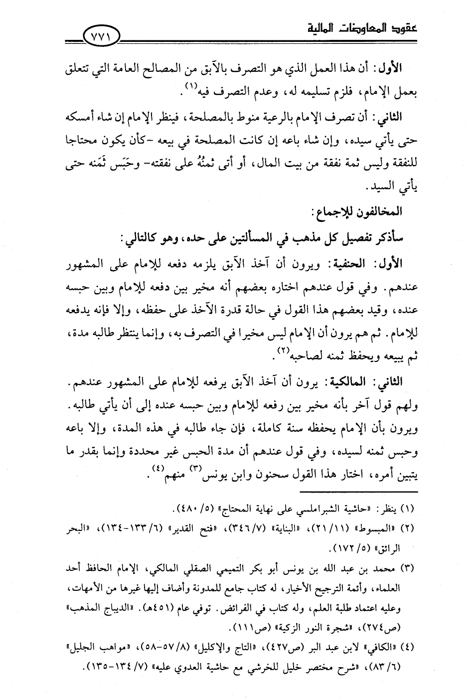 (¬4) "الكافي" لابن عبد البر (ص 427)، "التاج والإكليل" (8/ 57 - 58)، "مواهب الجليل" (6/ 83)، "شرح مختصر خليل للخرشي مع حاشية العدوي عليه" (7/ 134 - 135).
