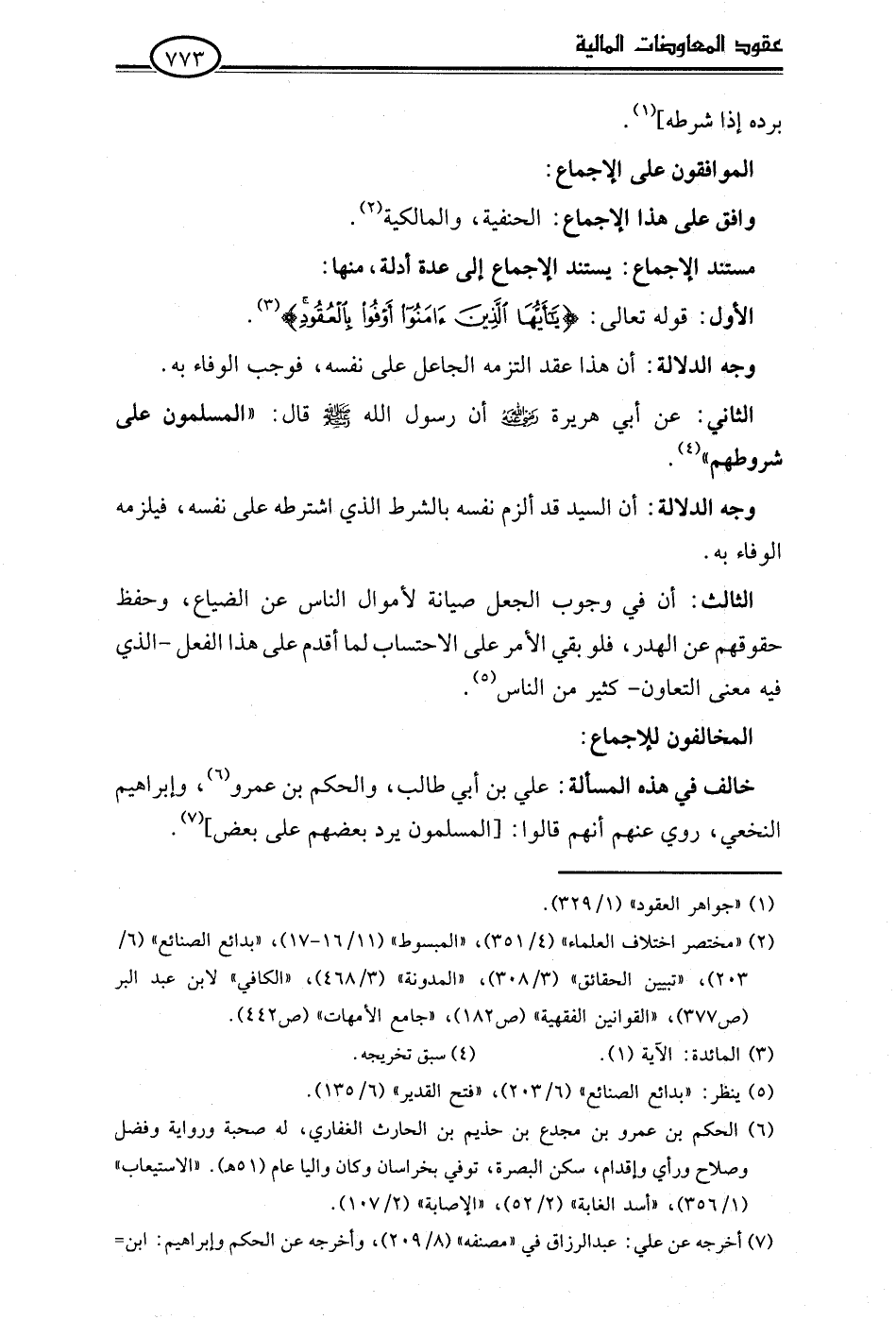 الأول: قوله تعالى: {يَاأَيُّهَا الَّذِينَ آمَنُوا أَوْفُوا بِالْعُقُودِ} (¬3).
