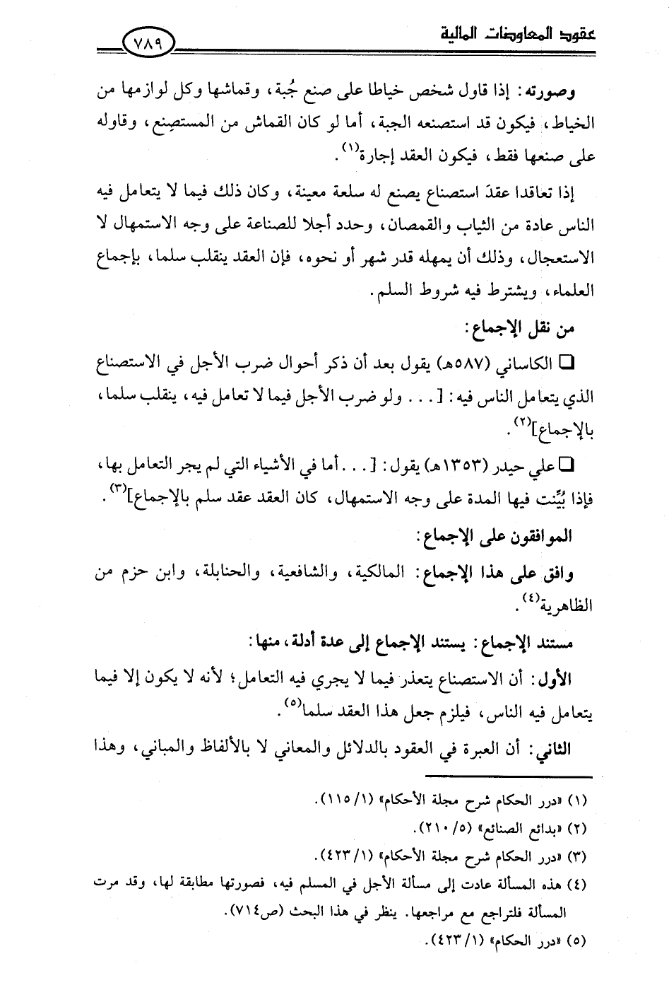 • علي حيدر (1353 هـ) يقول: [. . . أما في الأشياء التي لم يجر التعامل بها، فإذا بُيِّنت فيها المدة على وجه الاستمهال، كان العقد عقد سلم بالإجماع] (¬3).