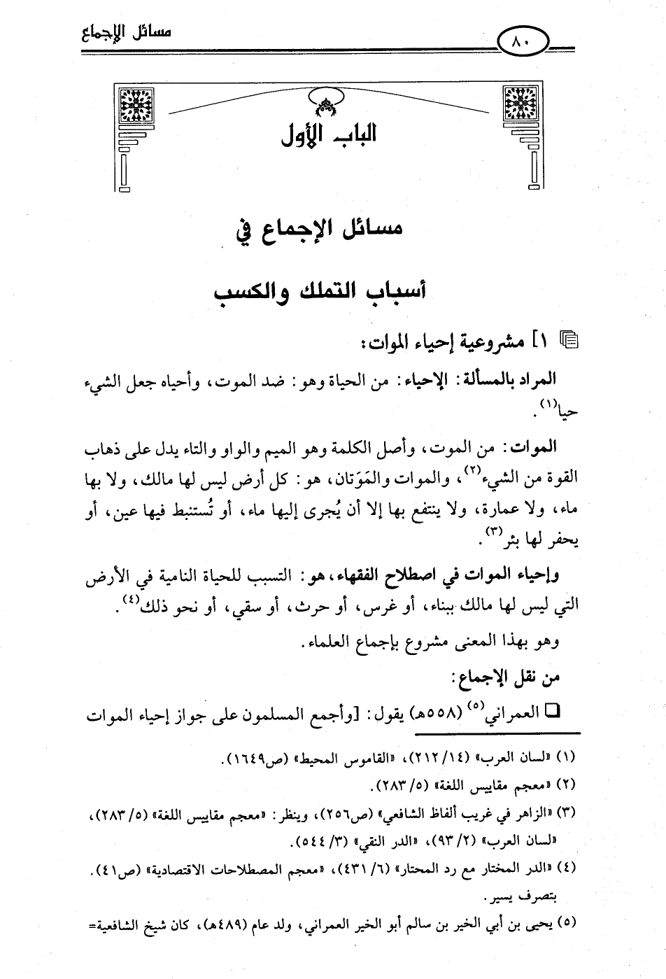 الباب الأول: مسائل الإجماع في أسباب التملك والكسب