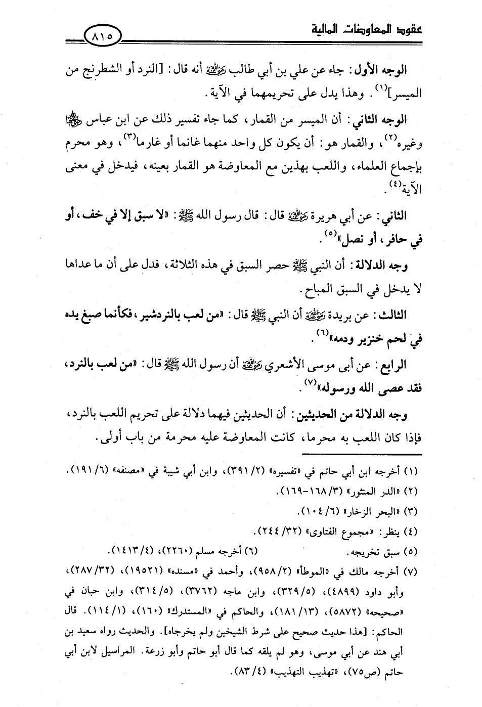 الرابع: عن أبي موسى الأشعري -رضي اللَّه عنه- أن رسول اللَّه -صلى اللَّه عليه وسلم- قال: "من لعب بالنرد، فقد عصى اللَّه ورسوله" (¬7).