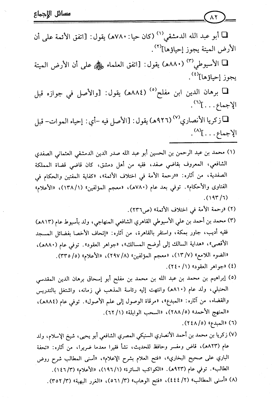 • الأسيوطي (¬3) (880 هـ) يقول: [اتفق العلماء -رضي اللَّه عنهم- على أن الأرض الميتة يجوز إحياؤها] (¬4).