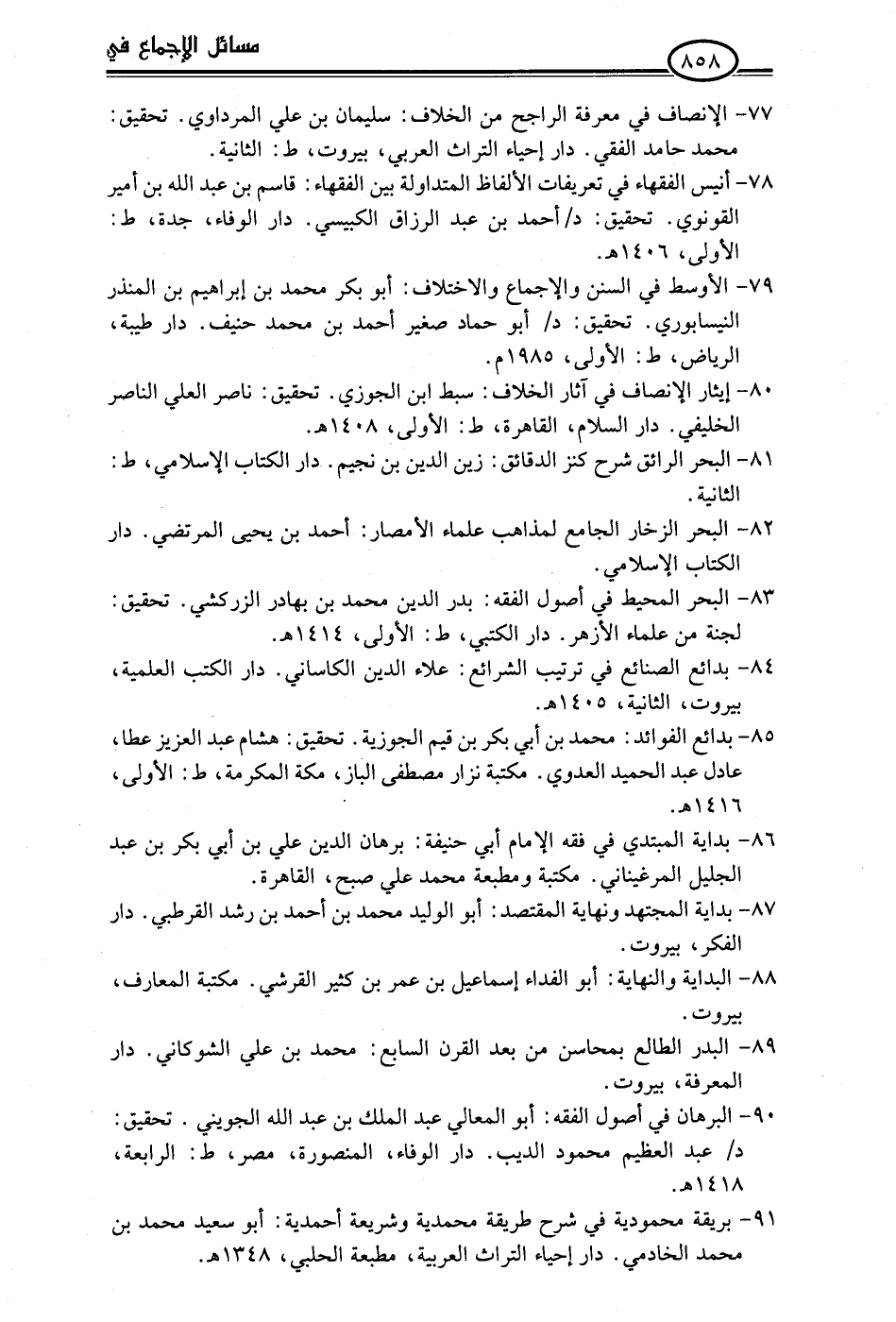 87 - بداية المجتهد ونهاية المقتصد: أبو الوليد محمد بن أحمد بن رشد القرطبي. دار الفكر، بيروت.