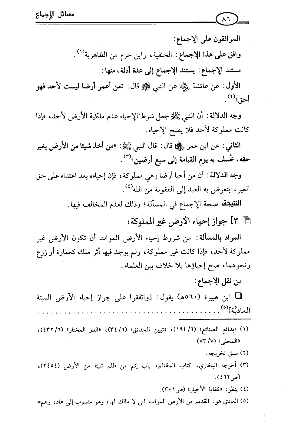 • ابن هبيرة (560 هـ) يقول: [واتفقوا على جواز إحياء الأرض الميتة العاديَّة] (¬5). . . . . .