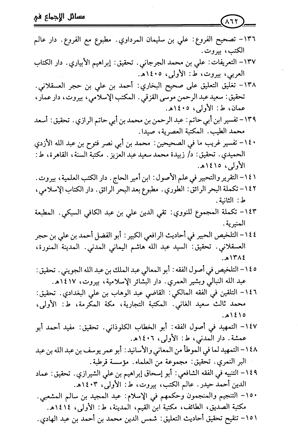 141 - التقرير والتحبير في علم الأصول: ابن أمير الحاج. دار الكتب العلمية، بيروت.