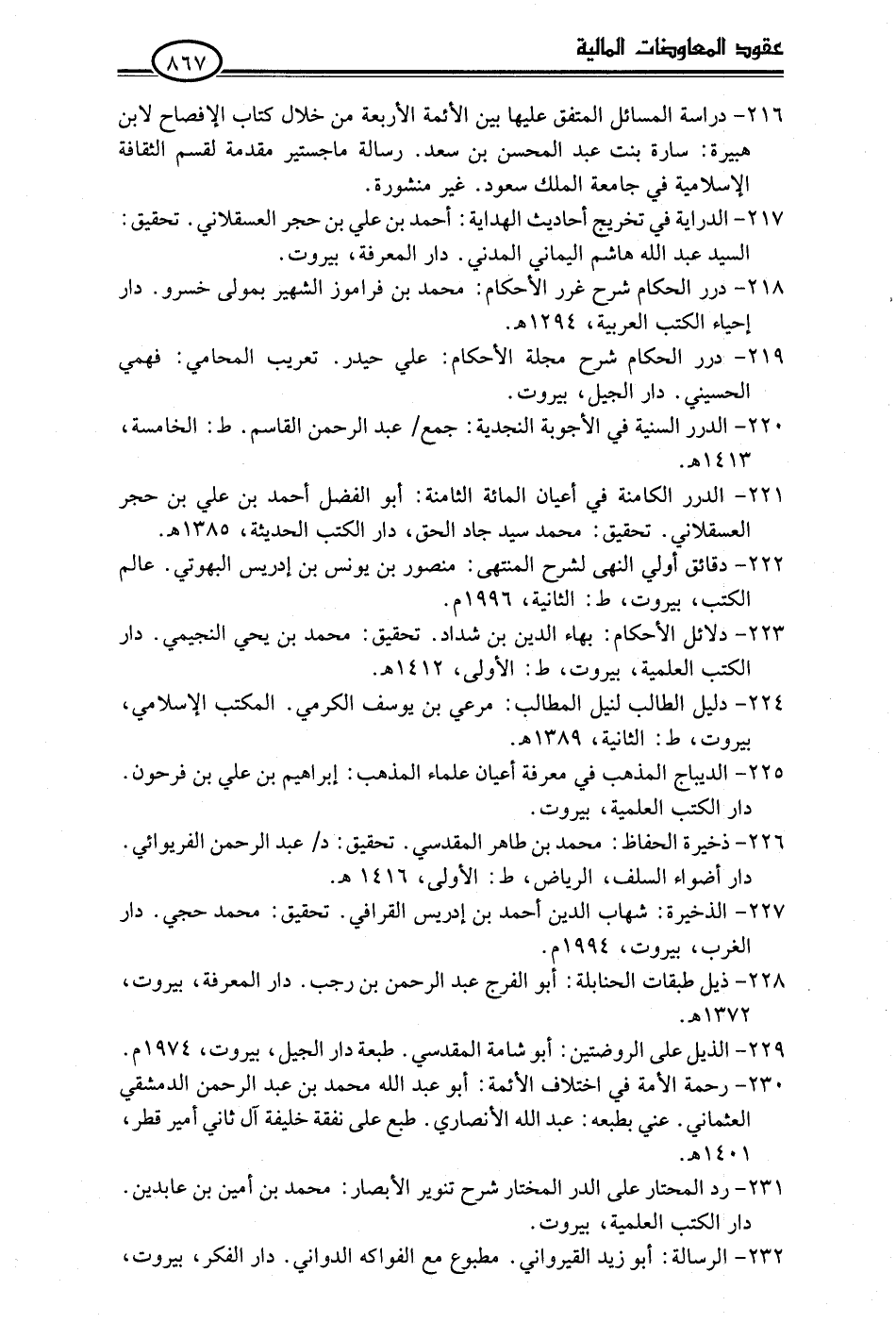 222 - دقائق أولي النهى لشرح المنتهى: منصور بن يونس بن إدريس البهوتي. عالم الكتب، بيروت، ط: الثانية، 1996 م.